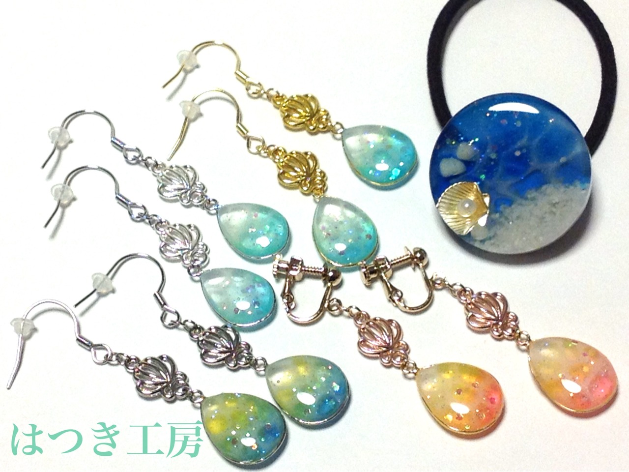 雫型を覗けば穏やかな海が見えるようなグラデーションが美しい作品。