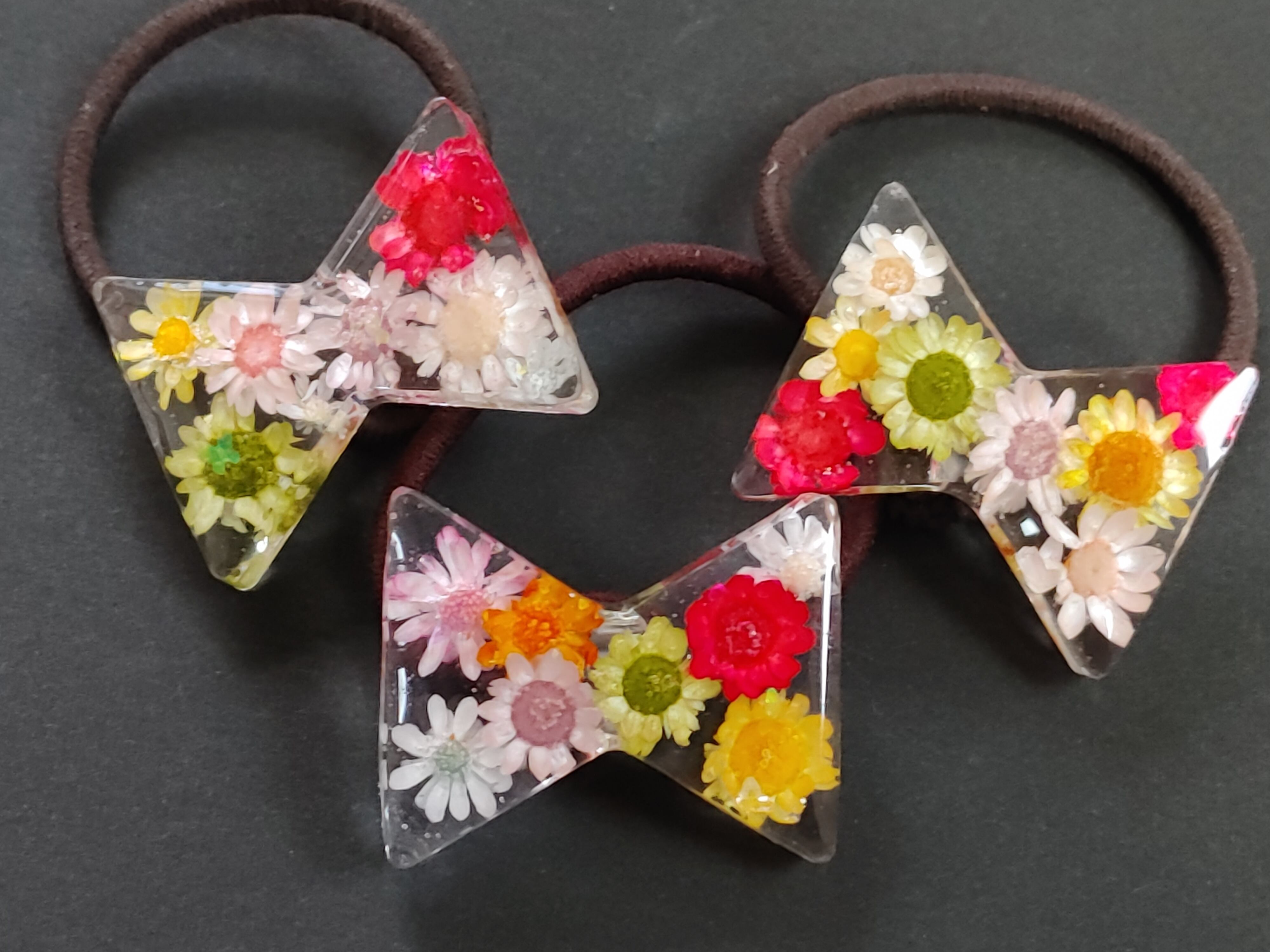 本物のお花を使った1つも同じものがないアクセサリーです。