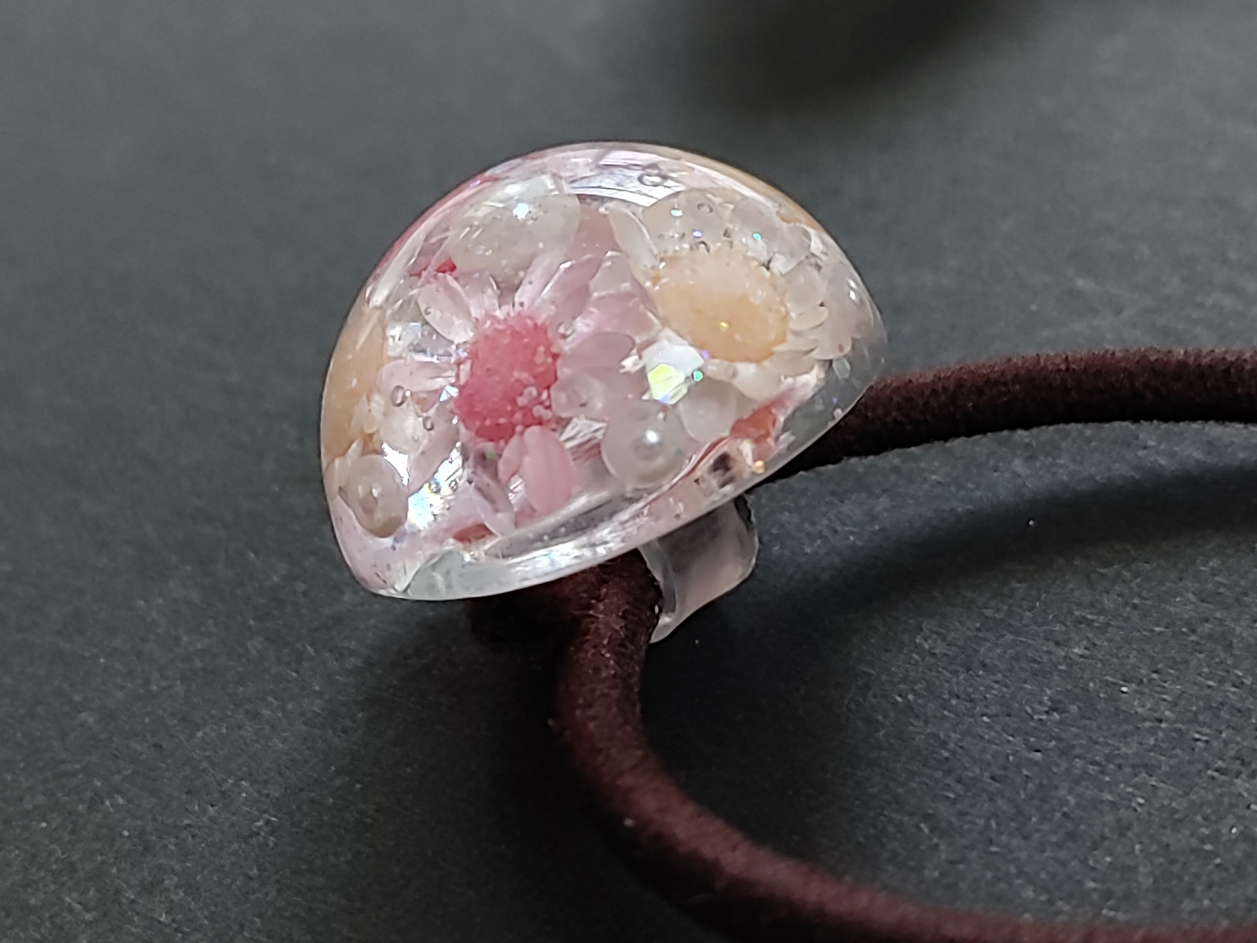 ドライフラワーの入ったヘアゴムです。